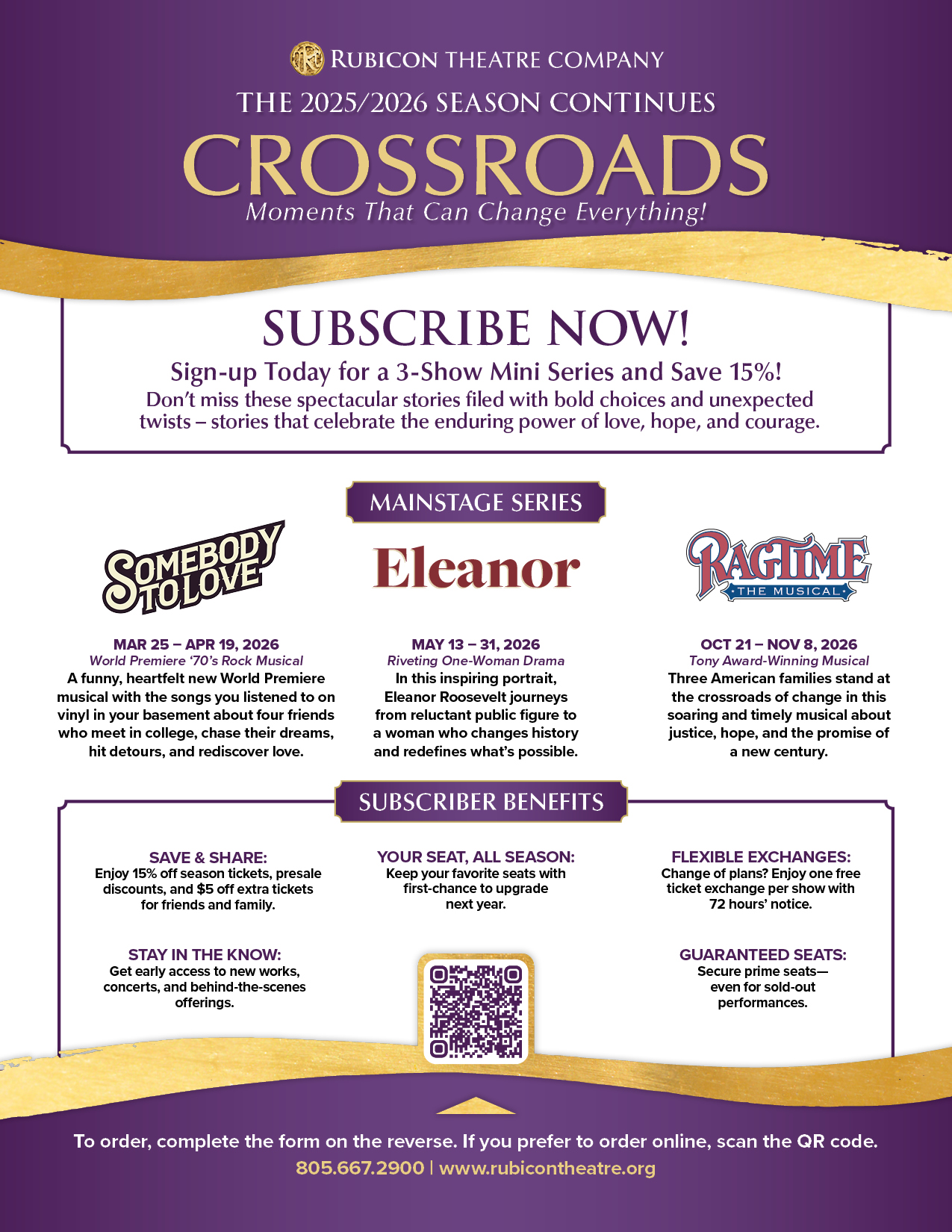 Don’t miss this moment to subscribe, because, as I’ve experienced during 27 miraculous years at Rubicon – one choice, one show, one season can change everything.